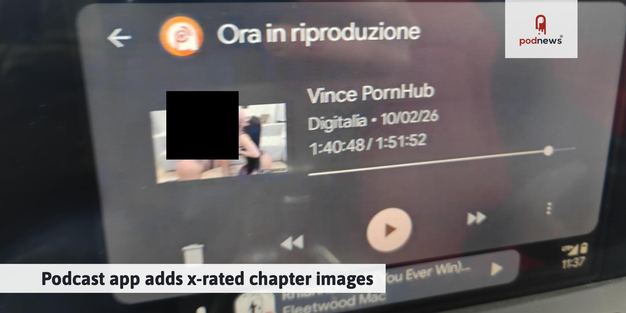 Podnewsが2026年2月18日に報じた記事「Podcast app adds x-rated chapter images」は、ポッドキャストアプリが自動生成するチャプター画像に不適切な内容が含まれた事例を詳細に伝えています。この問題は、特に自動車内でのポッドキャスト再生中に発生し、同乗者に困惑を与える可能性が指摘されています。